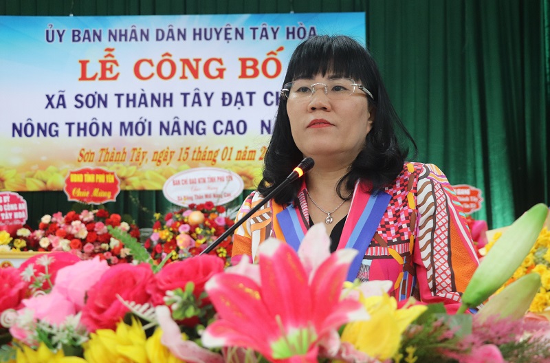 Phát biểu tại lễ công bố, đồng chí Hồ Thị Nguyên Thảo, Phó Chủ tịch tỉnh ghi nhận và biểu dương những thành quả và nỗ lực mà Đảng bộ, chính quyền và Nhân dân xã Sơn Thành Tây đã đạt được trong thời gian qua. Thời gian tới, đề nghị xã Sơn Thành Tây tiếp tục phát huy nội lực, tiềm năng và thế mạnh của địa phương trong phát triển kinh tế – xã hội, thu hút các nguồn lực đầu tư phát triển sản xuất công nghiệp, tiểu thủ công nghiệp, du lịch và dịch vụ, đào tạo nguồn nhân lực, xây dựng xã Sơn Thành Tây ngày càng phát triển, giữ vững và nâng cao các tiêu chí xã nông thôn mới nâng cao tiến tới xây dựng xã nông thôn mới kiểu mẫu.