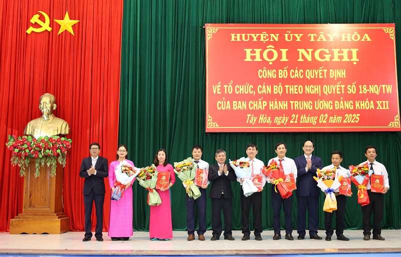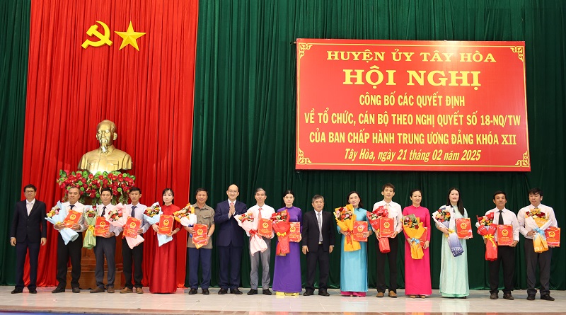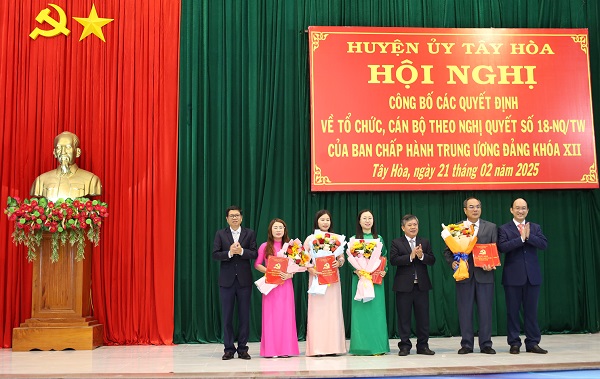 Tây Hoà: Công bố các Quyết định về tổ chức, cán bộ theo Nghị quyết số 18-NQ/TW của BCH Trung ương Đảng khoá XII