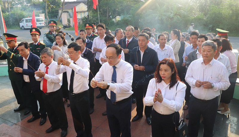 Dự lễ dâng hương có các đồng chí: Nguyễn Phương Đông, Tỉnh ủy viên, Bí thư Huyện ủy; Đỗ Văn Cấp, Phó Bí thư Thường trực Huyện ủy, Chủ tịch HĐND huyện; Trần Minh Trí, Phó Bí thư Huyện ủy, Chủ tịch UBND Huyện; Lê Thị Hồng Lưu, UVBTV, Chủ tịch UBMTTQ Việt Nam huyện; các đồng chí trong Ban Thường vụ Huyện ủy; lãnh đạo UBND huyện; lãnh đạo các cơ quan, đơn vị huyện; lãnh đạo các cơ quan Tỉnh, Trung ương đóng trên địa bàn huyện; cán bộ, chiến sĩ Ban Chỉ huy Quân sự huyện cùng đoàn dâng hương của xã Hòa Mỹ Đông.