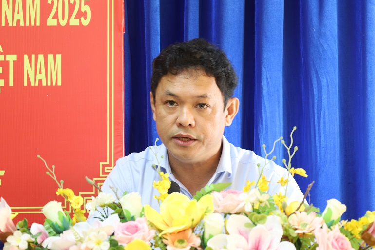 Đồng chí Phan Xuân Hạnh, TUV, Bí thư Đảng uỷ, Chủ tịch HĐND xã phát biểu chỉ đạo tại Hội nghị