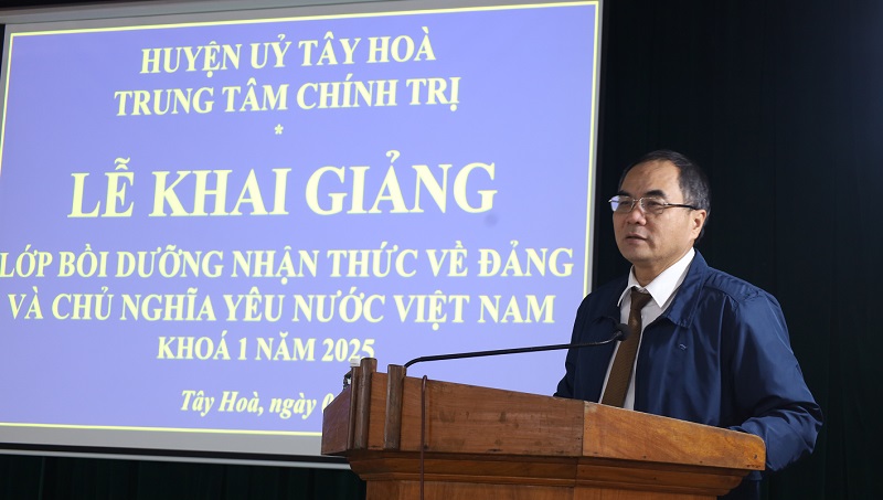 Sáng ngày 02/01, Trung tâm Chính trị huyện Tây Hoà phối hợp với các Ban Đảng Huyện uỷ tổ chức khai giảng lớp bồi dưỡng nhận thức về Đảng và chuyên đề Chủ nghĩa yêu nước Việt Nam khoá I/2025 cho gần 80 học viên đến từ 12 TCCS Đảng trực thuộc.