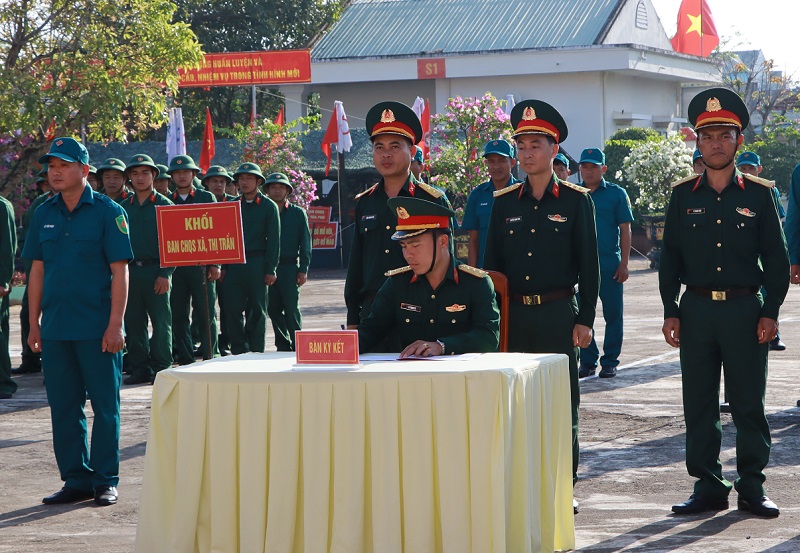 Tại buổi lễ, Ban CHQS huyện cũng đã phát động đợt thi đua cao điểm với chủ đề “Thần tốc – Quyết thắng”. Đợt thi đua diễn ra trong 79 ngày đêm từ ngày 01/3 đến ngày 19/5, góp phần chào mừng kỷ niệm 50 năm Giải phóng miền Nam, thống nhất đất nước và 135 năm Ngày sinh Chủ tịch Hồ Chí Minh. Sau lễ phát động, đại diện các đơn vị tiến hành ký kết giao ước thi đua.