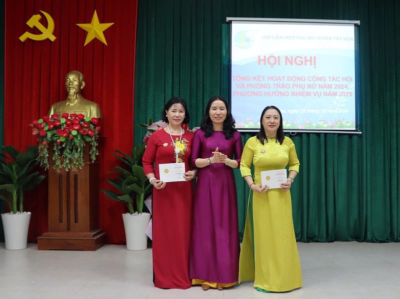 Dịp này, 03 cá nhân được Trung ương Hội trao tặng Kỷ niệm chương “Vì sự phát triển của phụ nữ Việt Nam”; Hội LHPN tỉnh và huyện đã trao thưởng cho các tập thể, cá nhân đạt thành tích xuất sắc trong công tác Hội và phong trào phụ nữ năm 2024.