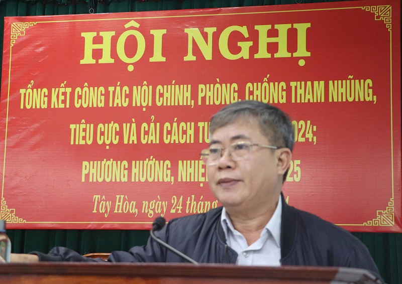 Sáng ngày 24/12, Huyện ủy Tây Hòa tổ chức Hội nghị tổng kết công tác nội chính, phòng, chống tham nhũng, tiêu cực; cải cách tư pháp năm 2024.