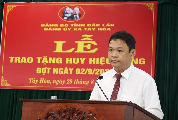 Phát biểu tại buổi lễ, Bí thư Đảng uỷ Phan Xuân Hạnh nhấn mạnh, việc trao tặng Huy hiệu Đảng nhằm thể hiện sự ghi nhận trân trọng của Đảng, Nhà nước và Nhân dân đối với quá trình phấn đấu rèn luyện và cống hiến không ngừng nghỉ của các đảng viên. Đây không chỉ là niềm vui, niềm tự hào của các đảng viên, mà còn là vinh dự chung của Đảng bộ và Nhân dân xã Tây Hòa. Đồng chí kêu gọi toàn thể đảng viên hãy khơi dậy mạnh mẽ tinh thần yêu nước, đẩy mạnh các phong trào thi đua, phấn đấu hoàn thành xuất sắc nhiệm vụ kinh tế – xã hội năm 2025, góp phần thực hiện thắng lợi Nghị quyết Đại hội Đảng bộ xã lần thứ I, nhiệm kỳ 2025-2030.