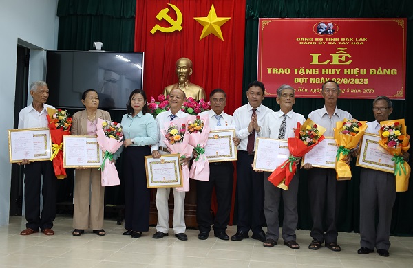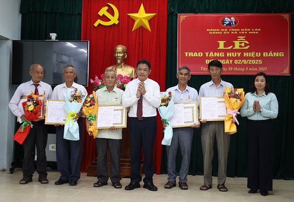 Dịp này, Đảng bộ xã Tây Hoà có 12 đảng viên được nhận Huy hiệu, trong đó: 5 đảng viên Huy hiệu 30 năm tuổi Đảng; 2 đảng viên Huy hiệu 40 năm tuổi Đảng; 3 đảng viên Huy hiệu 45 năm tuổi Đảng; 1 đảng viên Huy hiệu 50 năm tuổi Đảng và 1 đảng viên Huy hiệu 55 năm tuổi Đảng. Các đồng chí được tặng Huy hiệu đều là những thế hệ đảng viên tiêu biểu về phẩm chất, khí phách của người cộng sản, dành trọn niềm tin yêu cho Đảng, hoàn thành xuất sắc nhiệm vụ mà Đảng, Nhà nước giao. Các đồng chí vẫn luôn tích cực tham gia các hoạt động, gương mẫu đi đầu trong nhiều lĩnh vực; chung sức, đồng lòng cùng với Đảng bộ, chính quyền hoàn thành tốt nhiệm vụ chính trị của địa phương.