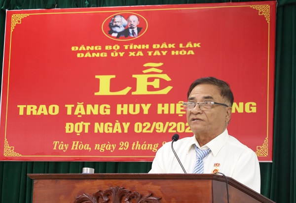 Sáng ngày 29/8, Đảng bộ xã Tây Hòa tổ chức Lễ trao tặng Huy hiệu Đảng cho đảng viên trong Đảng bộ đợt 2/9.