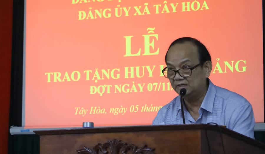 Thay mặt các đảng viên được nhận Huy hiệu Đảng, đảng viên 30 năm tuổi Đảng Nguyễn Văn Hiên phát biểu bày tỏ niềm xúc động trước sự quan tâm, ghi nhận của Đảng, Nhà nước và Nhân dân. Đồng chí bày tỏ quyết tâm tiếp tục đóng góp công sức, trí tuệ, kinh nghiệm của mình để cùng Đảng bộ và Nhân dân xã Tây Hòa xây dựng quê hương giàu đẹp.