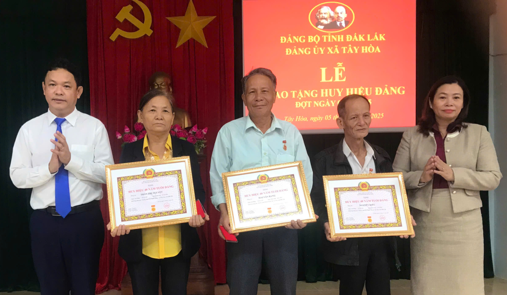 Trong đợt này, Đảng bộ xã Tây Hòa vinh dự có 9 đồng chí được nhận Huy hiệu 50 năm, 45 năm, 40 năm và 30 năm tuổi Đảng (trong đó, đề nghị truy tặng Huy hiệu 50 năm tuổi Đảng cho 1 đồng chí, đã trừ trần).