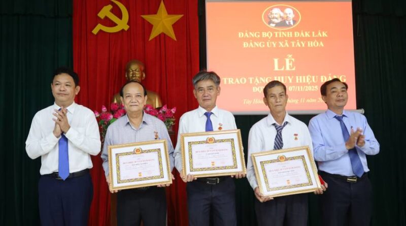 Sáng 5/11, Ban Thường vụ Đảng ủy xã Tây Hòa long trọng tổ chức lễ trao tặng Huy hiệu Đảng đợt 7/11/2025 cho các đảng viên.
