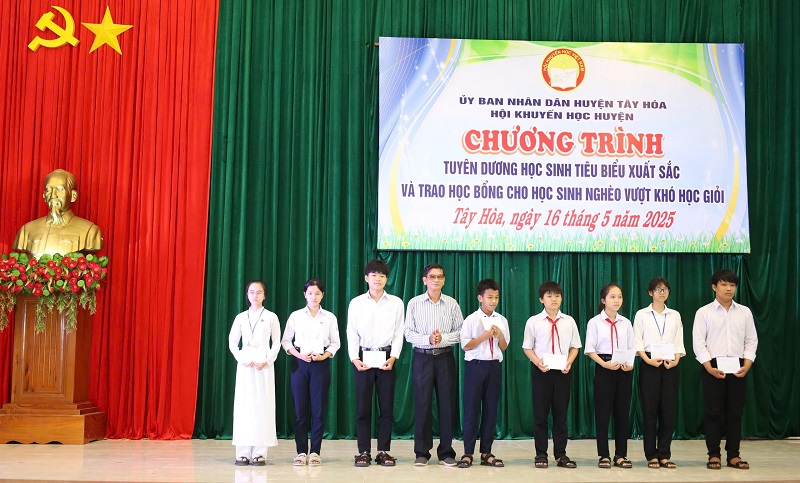 Sáng ngày 16/5, Hội Khuyến học huyện Tây Hòa tổ chức chương trình tuyên dương học sinh tiêu biểu xuất sắc và trao học bổng cho học sinh nghèo vượt khó học giỏi năm học 2024-2025.
