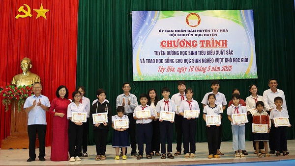 Tại buổi lễ, Hội Khuyến học huyện Tây Hòa đã tuyên dương khen thưởng cho 470 học sinh tiêu biểu, xuất sắc và học sinh nghèo vượt khó học giỏi năm học 2024-2025. Trong đó có 360 em đạt học sinh giỏi cấp quốc gia và cấp tỉnh năm học 2024-2025; trao học bổng “học không bao giờ cùng” cho 110 học sinh tiêu biểu vượt khó học tốt. Tổng kinh phí 180 triệu đồng.