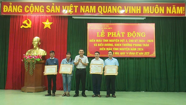 Nhân dịp này, Tây Hòa có 3 hộ gia đình và 12 cá nhân đã có thành tích xuất sắc trong công tác hiến máu tình nguyện năm 2024 được UBND tỉnh tặng Bằng khen; 03 tập thể, 12 hộ gia đình và 87 cá nhân được Hội Chữ thập đỏ tỉnh Phú Yên và UBND huyện Tây Hòa tặng Giấy khen đã có thành tích trong công tác tuyên truyền, vận động và tham gia hiến máu tình nguyện năm 2024.