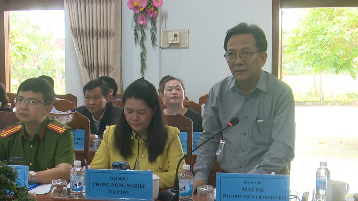 Đồng chí Mai Ne, UVBTV Huyện ủy, Phó Chủ tịch Thường trực UBND huyện phát biểu