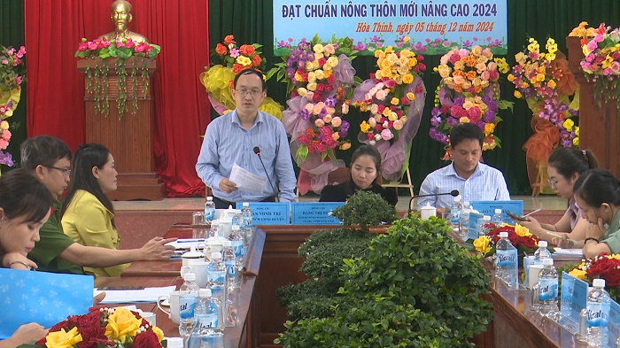 Tại Hội nghị, đoàn thẩm định đánh giá xã Hòa Thịnh đã đáp ứng các điều kiện và đạt chuẩn 19/19 tiêu chí xã NTM nâng cao; đồng thời đoàn đề nghị địa phương cần tiếp tục hoàn thiện thêm một số tiêu chí theo quy định để trình lên cấp trên xét công nhận xã đạt chuẩn nông thôn mới nâng cao.