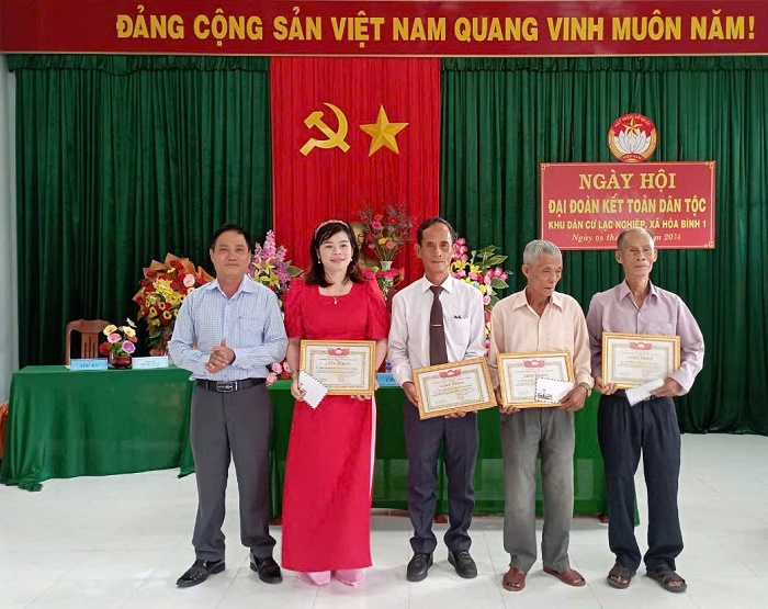 Lãnh đạo xã Hòa Bình 1 trao giấy khen cho tập thể, cá nhân ở khu dân cư