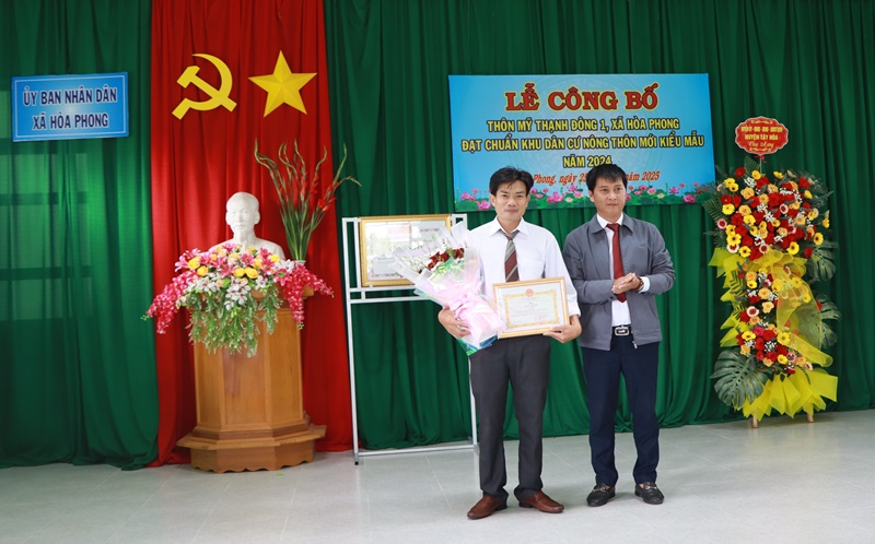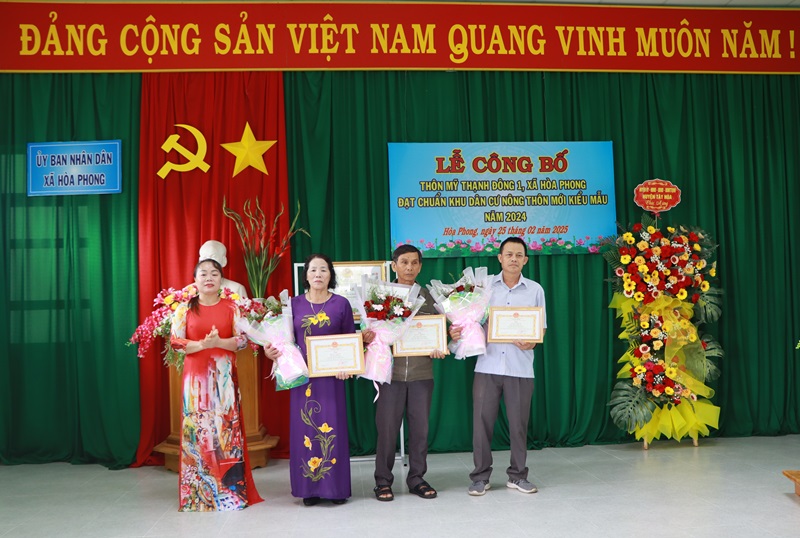Dịp này, UBND huyện Tây Hòa tặng thôn Mỹ Thạnh Đông 1 công trình phúc lợi trị giá 100 triệu đồng; UBND xã Hòa Phong tặng giấy khen cho 4 tập thể, cá nhân thôn Mỹ Thạnh Đông 1 đã có thành tích tiêu biểu trong công tác xây dựng khu dân cư NTM kiểu mẫu.