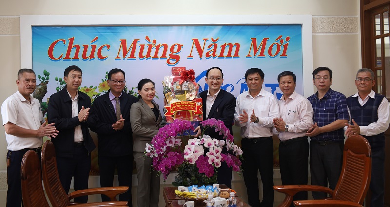Đồng chí Đinh Thị Thu Thanh, Ủy viên Ban Thường vụ, Trưởng ban Dân vận Tỉnh ủy cùng đoàn công tác thăm, chúc Tết UBND huyện