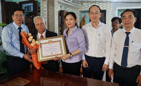 Trưởng ban Tuyên giáo và Dân vận Tỉnh uỷ trao Huy hiệu 65 năm tuổi Đảng cho đảng viên tại xã Hoà Mỹ Đông