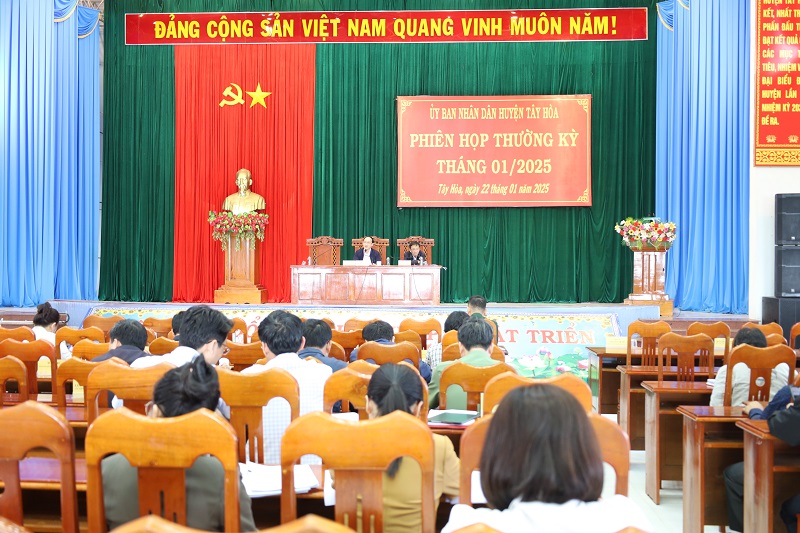 Chiều ngày 22/01, UBND huyện Tây Hoà tổ chức phiên họp thường kỳ tháng 01/2025 để cho ý kiến các nội dung theo Quy chế làm việc. Các đồng chí: Trần Minh Trí, Phó Bí thư Huyện ủy, Chủ tịch UBND huyện; Mai Ne, ủy viên BTV Huyện ủy, Phó Chủ tịch Thường trực UBND huyện chủ trì phiên họp.