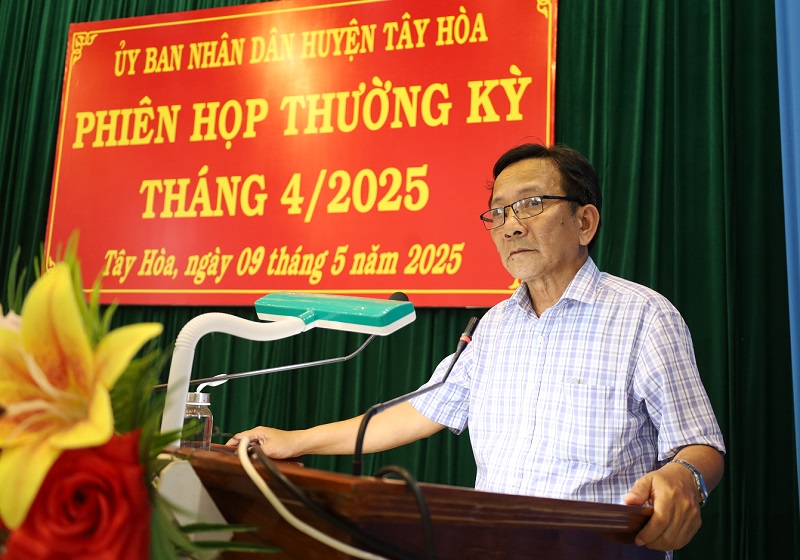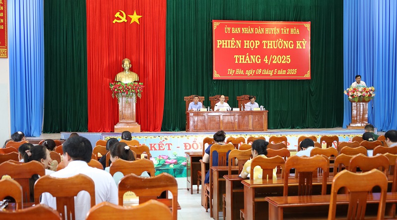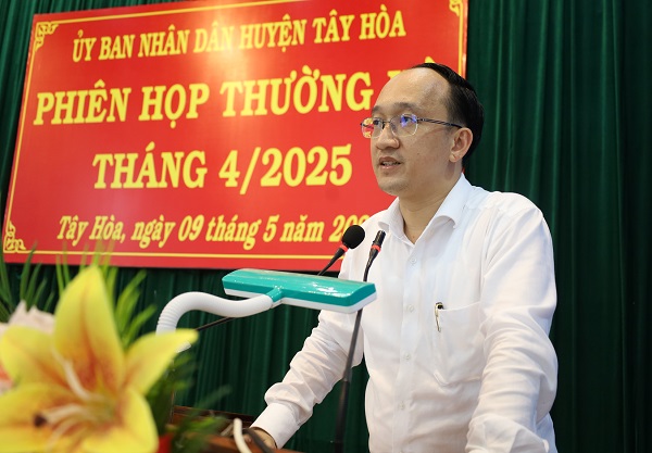 Chiều ngày 09/5, UBND huyện Tây Hoà tổ chức phiên họp thường kỳ tháng 4/2025 để cho ý kiến các nội dung theo Quy chế làm việc. Các đồng chí: Trần Minh Trí, Phó Bí thư Huyện ủy, Chủ tịch UBND huyện; Mai Ne, Uỷ viên BTV Huyện uỷ, PCT Thường trực UBND huyện; Phan Công Trinh, Huyện ủy viên, Phó Chủ tịch UBND huyện chủ trì phiên họp.