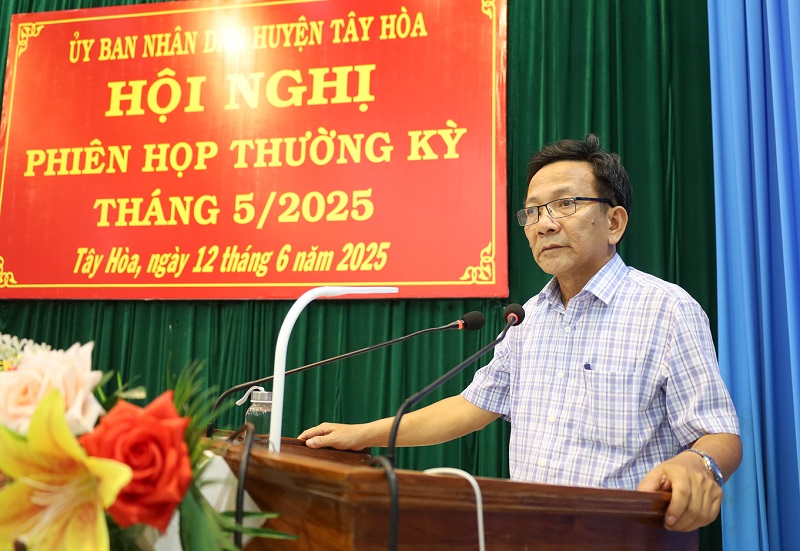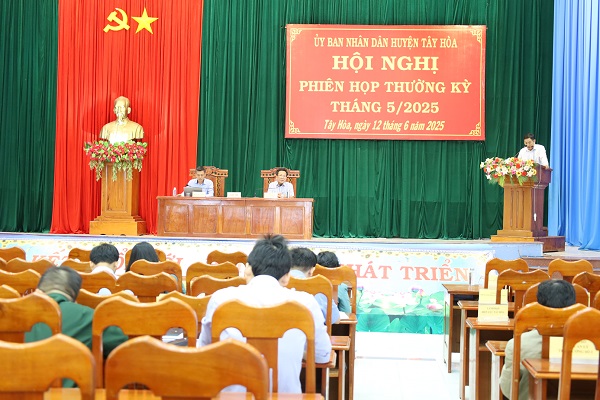 Sáng 12/6, UBND huyện Tây Hòa tổ chức phiên họp thường kỳ tháng 5/2025 để đánh giá tình hình kinh tế – xã hội, quốc phòng – an ninh tháng 5/2025 và 6 tháng đầu năm 2025; đồng thời, cho ý kiến một số nội dung theo Quy chế làm việc. Đồng chí Mai Ne, ủy viên BTV Huyện ủy, Phó Chủ tịch Thường trực UBND huyện và đồng chí Phan Công Trinh, Huyện uỷ viên, Phó Chủ tịch UBND huyện chủ trì phiên họp.