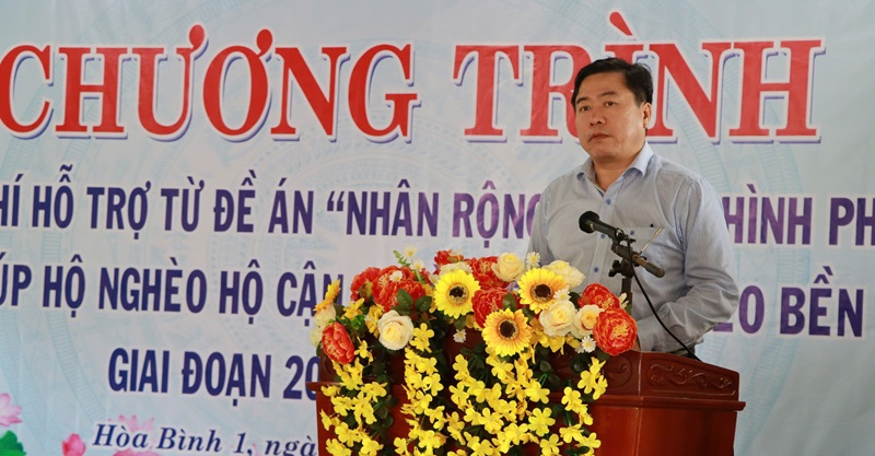 Phát biểu tại chương trình đồng chí Chủ tịch Uỷ ban MTTQ Việt Nam tỉnh Trần Hữu Thế cho biết : Với mục tiêu chung của đề án là hỗ trợ các hộ nghèo, hộ cận nghèo phát triển sản xuất, đa dạng hóa sinh kế, nhân rộng các mô hình giảm nghèo nhằm phát triển kinh tế cải thiện đời sống vật chất, tinh thần, tăng thu nhập cho người dân, hạn chế tái nghèo.Trong đợt 1 này toàn tỉnh có 444 hộ được hỗ trợ, số tiền 20 triệu đồng/hộ, gồm các đối tượng người lao động thuộc hộ nghèo, hộ cận nghèo, ưu tiên hộ nghèo là đồng bào dân tộc thiểu số, hộ nghèo có thành viên là người có công với cách mạng, người khuyết tật (không có sinh kế ổn định) và phụ nữ thuộc hộ nghèo. Thời gian triển khai đề án (dự kiến 36 tháng), các hộ được hỗ trợ vốn phải hoàn trả cho đề án 30% số tiền đã hỗ trợ đối với các hộ nghèo, 40% số tiền đã hỗ trợ đối với các hộ cận nghèo để luân chuyển cho các hộ nghèo, hộ cận nghèo khác trong từng huyện. Trong đợt này huyện Tây Hòa có 21 hộ được hỗ trợ vốn để chăn nuôi gà và bò thịt, tổng số tiền 420 triệu đồng.