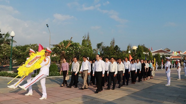Trong không khí trang nghiêm, thành kính, các đồng chí lãnh đạo huyện đã đặt vòng hoa, thắp hương tưởng niệm tại mộ các liệt sĩ. Vòng hoa của Huyện ủy – HĐND – UBND – UBMTTQVN huyện mang dòng chữ “Đời đời nhớ ơn các anh hùng liệt sĩ” thể hiện sự tri ân sâu sắc đối với các anh hùng liệt sĩ đã hy sinh vì độc lập tự do của Tổ quốc, vì hạnh phúc của Nhân dân. Sau lễ viếng Nghĩa trang liệt sĩ tỉnh, đoàn của huyện đã đến dâng hương tại Đài tưởng niệm Núi Nhạn; Đền thờ liệt sĩ tỉnh; Nhà trưng bày lưu niệm Luật sư – Chủ tịch Nguyễn Hữu Thọ.