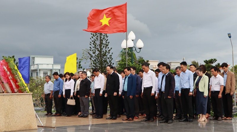 Trong không khí trang nghiêm, thành kính, các đồng chí lãnh đạo huyện đã đặt vòng hoa, thắp hương tưởng niệm tại mộ các liệt sĩ. Vòng hoa của Huyện ủy – HĐND – UBND – UBMTTQVN huyện mang dòng chữ “Đời đời nhớ ơn các anh hùng liệt sĩ” thể hiện sự tri ân sâu sắc đối với các anh hùng liệt sĩ đã hy sinh vì độc lập tự do của Tổ quốc, vì hạnh phúc của Nhân dân. Sau lễ viếng Nghĩa trang liệt sĩ tỉnh, đoàn của huyện đã đến dâng hương tại Đài tưởng niệm Núi Nhạn; Đền thờ liệt sĩ tỉnh; Nhà trưng bày lưu niệm Luật sư – Chủ tịch Nguyễn Hữu Thọ.