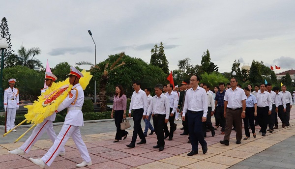 Sau lễ viếng Nghĩa trang liệt sĩ tỉnh, đoàn của huyện đã đến dâng hương tại Đài tưởng niệm Núi Nhạn; Đền thờ liệt sĩ tỉnh.