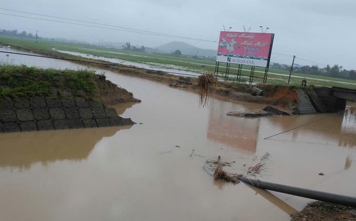 Một đoạn kênh mương trên tuyến QL29 đoạn qua địa bàn xã bị sạt lở nghiêm trọng. ẢNH: ANH THƯ