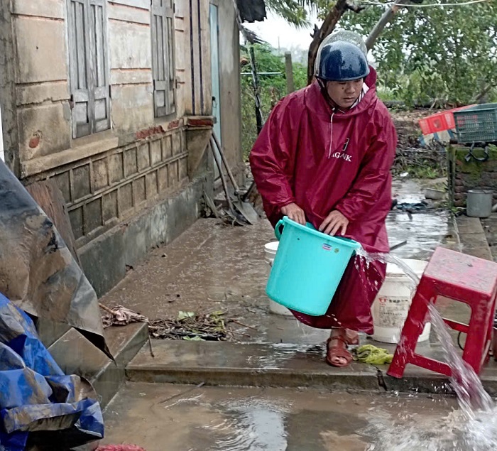 Người dân thôn Phước Mỹ dọn vệ sinh nhà cửa sau khi nước lũ rút. ẢNH: LỆ ĐÍNH