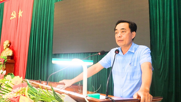 Đồng chí Lê Văn Mười, Chủ tịch Ủy ban bầu cử xã phát biểu tại hội nghị